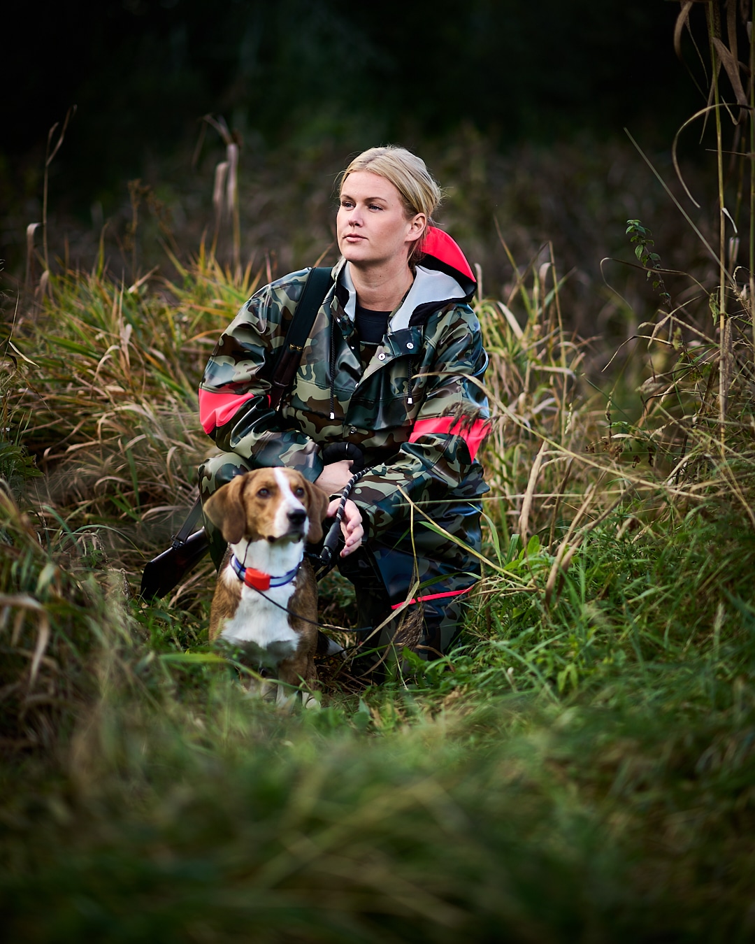 Rain jacket in unisex model designed to facilitate mobility.