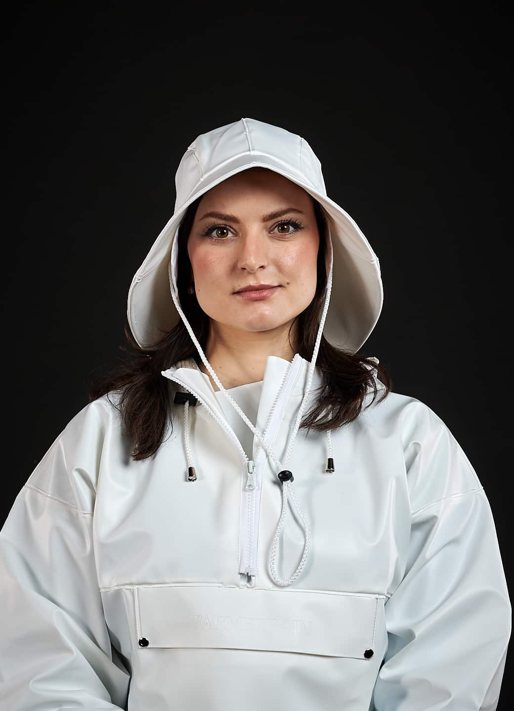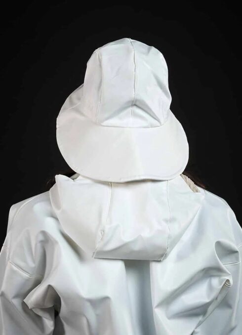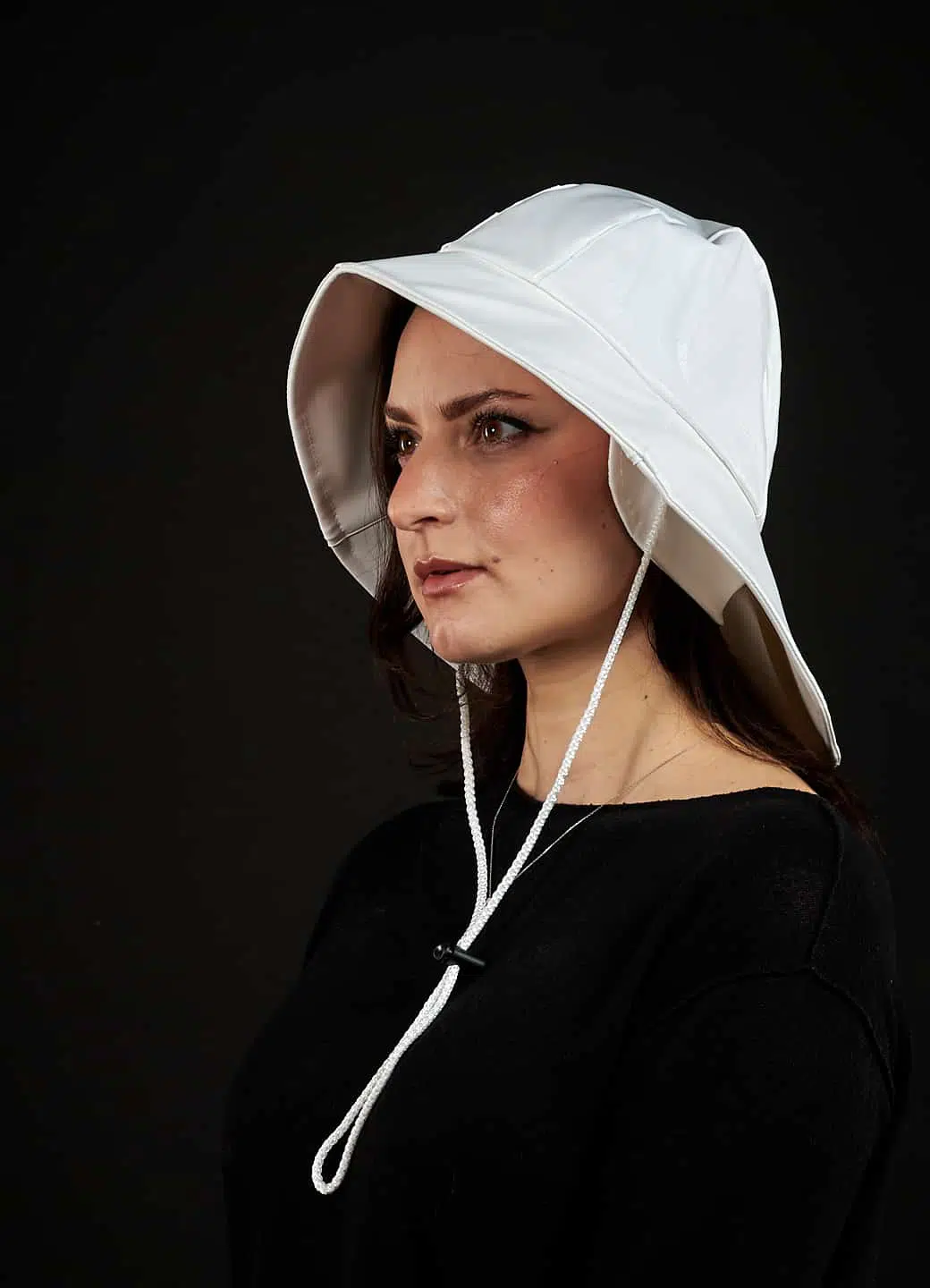 Southwest with ear protection and drawstring for adjustment.